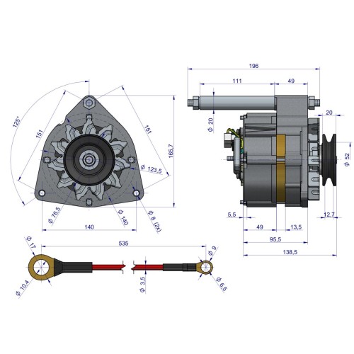 Alternator dostarczany jest w wersji kompletnej – z kołem pasowym, gotowy do montażu bez konieczności stosowania dodatkowych elementów. Solidna konstrukcja oraz precyzyjne wykonanie sprawiają, że komponent doskonale radzi sobie w warunkach intensywnej eksploatacji rolniczej, przy dużym zapyleniu, zmiennych temperaturach i długotrwałym obciążeniu.