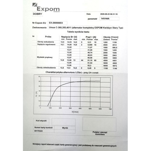 Każdy alternator EXPOM KWIDZYN EU przechodzi rygorystyczną kontrolę jakości – 100% produktów jest testowanych po montażu, co gwarantuje niezawodność i bezpieczeństwo użytkowania.