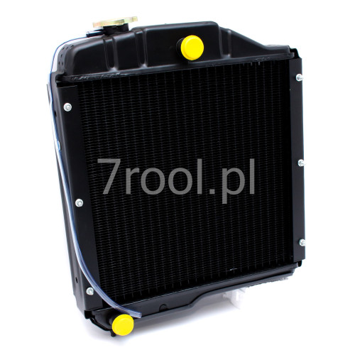 Wysokiej klasy czterorzędowa chłodnica wody przeznaczona do ciągnika ZETOR 7211. Wykonana z miedzi, wyposażona w korek wlewowy i kranik spustowy, co ułatwia codzienną obsługę i konserwację układu chłodzenia. Przystosowana do intensywnej pracy w wymagających warunkach rolniczych.