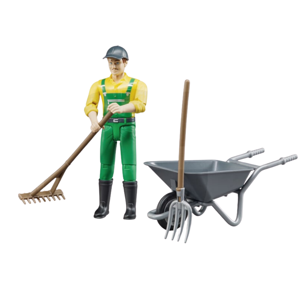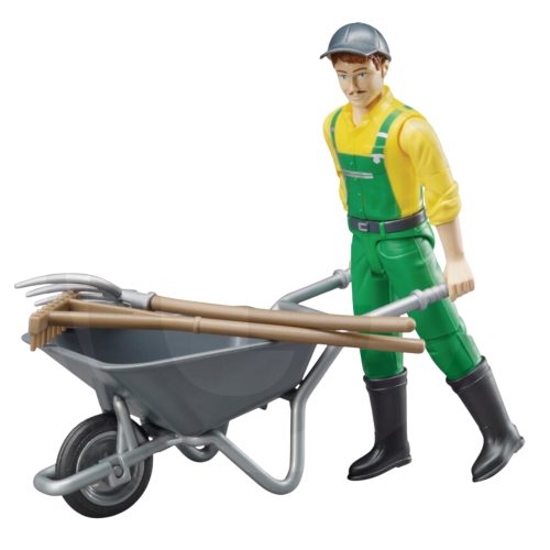 Figurka pracownika konserwacji zieleni 62610 z realistycznymi akcesoriami. Wysokiej jakości materiał, bezpieczna dla dzieci, kompatybilna z innymi zestawami Bruder. Idealna do kreatywnej zabawy i nauki przez zabawę.
