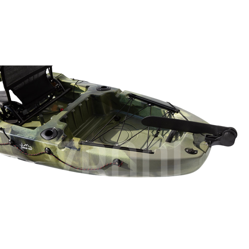 SolidTrip SHARK posiada dedykowany system napędu pedałowego AquaGlide, który umożliwia płynne pedałowanie do przodu i do tyłu. System pozwala na bezręczne pływanie, ułatwiając precyzyjne pozycjonowanie kajaka i ciche podejście do najlepszych miejscówek wędkarskich. Napęd AquaGlide zużywa mniej energii niż tradycyjne rozwiązania, zapewniając większą wygodę i efektywność podczas długich wypraw.