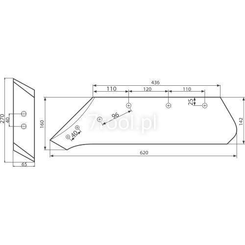 Dłuto napawane, lewe lemiesza do pługów Kverneland 63090