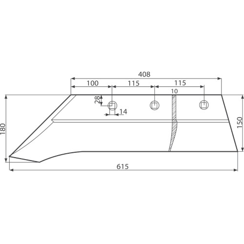Do pługa z korpusem 1023 – jeśli masz wątpliwość co do mocowania, porównaj rozstaw otworów: 100 mm, 115 mm, 115 mm.