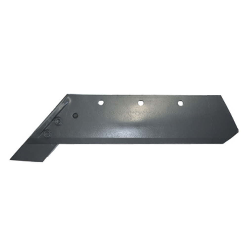 Lemiesz prawy z dłutem do pługów Pöttinger – 930.78.122.1/P. Hartowana stal, samoostrzenie, dłuto w komplecie, 4 otwory montażowe + 2 otwory na dłuto. Gotowy do intensywnej pracy w polu.