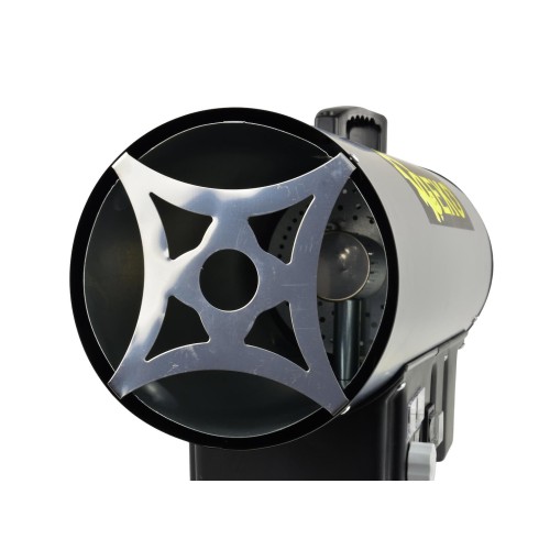 Dzięki systemom bezpieczeństwa, takim jak automatyczne odcięcie gazu przy zaniku płomienia oraz zabezpieczenie przed przegrzaniem, urządzenie jest w pełni bezpieczne w użytkowaniu. Wysoka moc grzewcza i wydajny przepływ powietrza (1000 m³/h) gwarantują szybkie i efektywne ogrzewanie hal, magazynów, warsztatów i innych dużych powierzchni.
