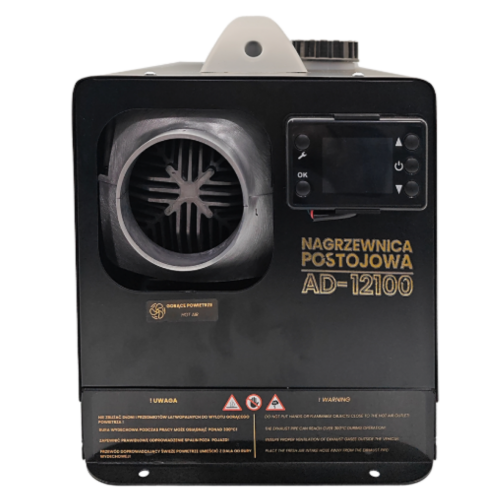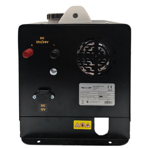 Nagrzewnica olejowa postojowa Adler 12 kW (AD-12100) na diesel z zasilaniem 12V / 24V / 230V. Wydajne ogrzewanie pojazdów, warsztatów i hal. Zbiornik 5 l, spalanie 0,8 l/h, klasa A++.