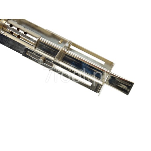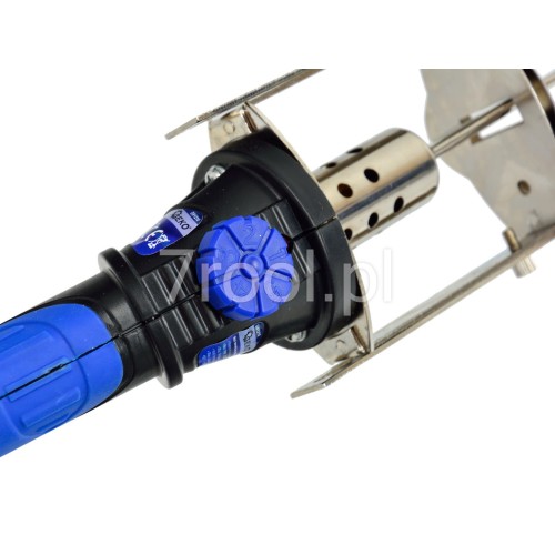 Nóż posiada 5-stopniową regulację temperatury oraz suwak umożliwiający ustawienie długości roboczej ostrza w zakresie od 15 do 100 mm, co pozwala na komfortową i bezpieczną pracę przy różnorodnych zadaniach montażowych i izolacyjnych.