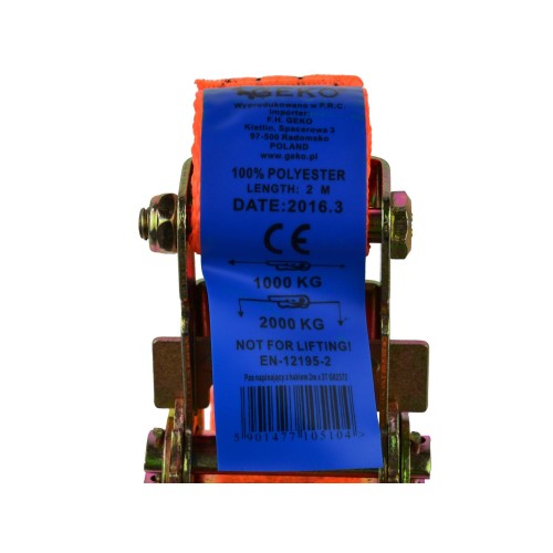 Pas transportowy z grzechotką 2m/2T/35mm G02372 – mocny i praktyczny pas do zabezpieczania ładunków w transporcie.