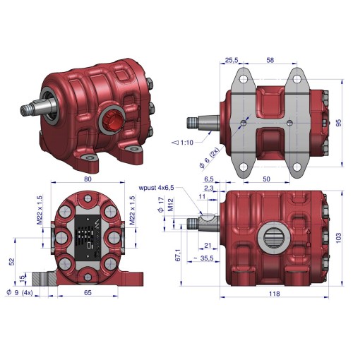 Dzięki wydajności 23 l/min przy 1500 obr./min oraz solidnej konstrukcji, pompa gwarantuje stabilną pracę podnośnika, niezależnie od warunków terenowych. Kierunek obrotów jest lewy, a pompa pracuje w zakresie prędkości 800–2500 obr./min, zapewniając pełną kompatybilność z układem hydraulicznym Ursusa.
