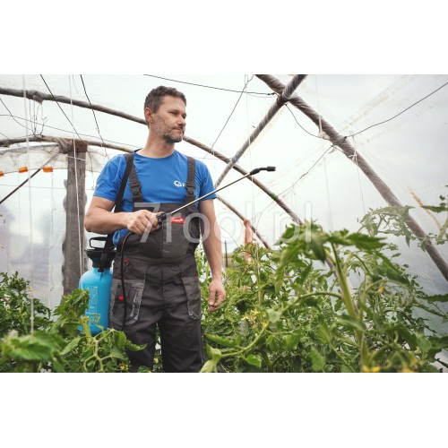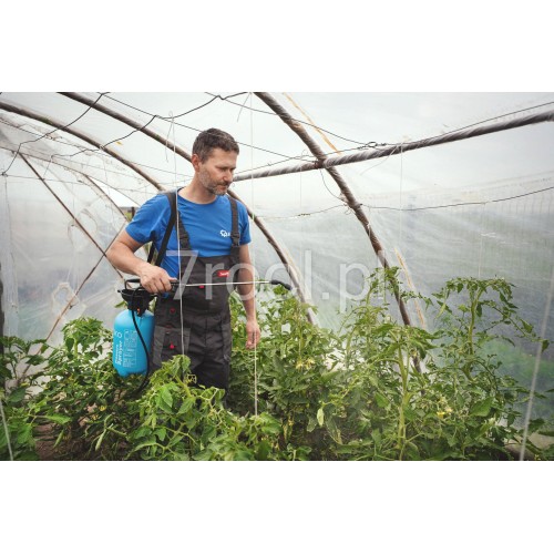Pasek do noszenia opryskiwacza na ramieniu znacząco zwiększa mobilność, a prosty system napełniania przez otwór w kształcie lejka minimalizuje ryzyko rozlania cieczy. Sprawdzi się do oprysku środkami ochrony roślin, nawozami dolistnymi, herbicydami, a także do celów dezynfekcyjnych.