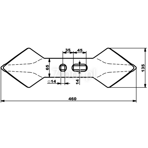 Dłuto lemiesza lewe 3-otw., napawane. Unia 115072