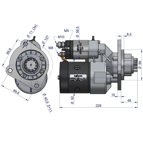 Rozrusznik z reduktorem typu Magneton Blue Line EXPOM KWIDZYN eu to nowoczesny, szybkoobrotowy rozrusznik 12V o mocy 2.7 kW, wyposażony w przekładnię planetarną. Przeznaczony do ciągników Ursus C-330, C-360 oraz szerokiej gamy modeli Zetor i Valtra (Valmet), stanowi wydajne i niezawodne rozwiązanie rozruchowe w maszynach rolniczych i przemysłowych.