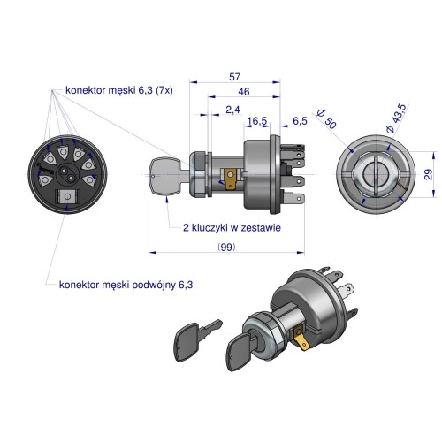 Wysokiej jakości stacyjka EXPOM KWIDZYN przeznaczona do maszyn rolniczych marek John Deere, Massey Ferguson oraz Fiat New Holland. Produkt stanowi solidny i trwały element układu elektrycznego, odpowiadający za bezpieczne uruchamianie pojazdu oraz prawidłowe sterowanie zasilaniem.