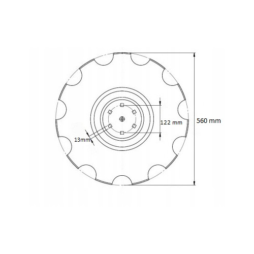 Talerz uzębiony o średnicy 560 mm z wpustem pod piastę o grubości 4 mm, rozstaw otworów 122mm, wykonany jest z wysokiej jakości stali borowej. Talerz tnący typ P 560 mm z wpustem pod piastę pasuje do agregatów i bron talerzowych firmy AGRO MASZ.