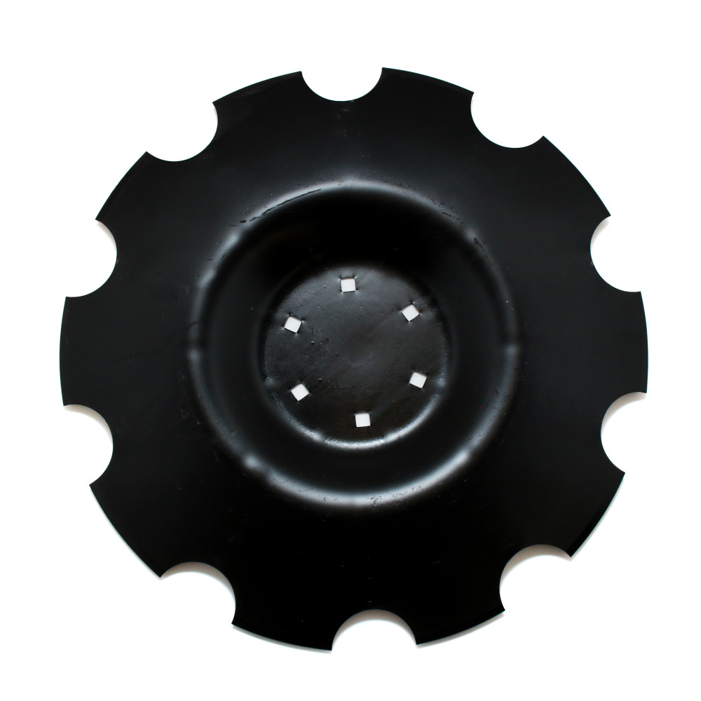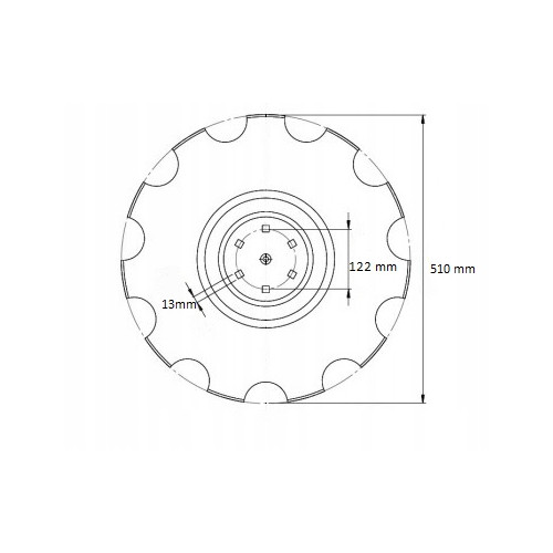 Talerz uzębiony o średnicy 510 mm z wpustem pod piastę o grubości 3.5 mm, rozstaw otworów 122mm, wykonany jest z wysokiej jakości stali borowej. Talerz tnący typ P 510 mm z wpustem pod piastę pasuje do agregatów i bron talerzowych firmy AGRO MASZ.