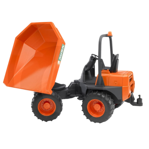 Mini wywrotka AUSA Bruder 2449 w skali 1:16 z przegubowym układem kierowniczym i obrotową skrzynią. Wykonana z ABS, kompatybilna z przyczepami Bruder. Idealna zabawka edukacyjna i prezent świąteczny dla chłopców od 3 lat.