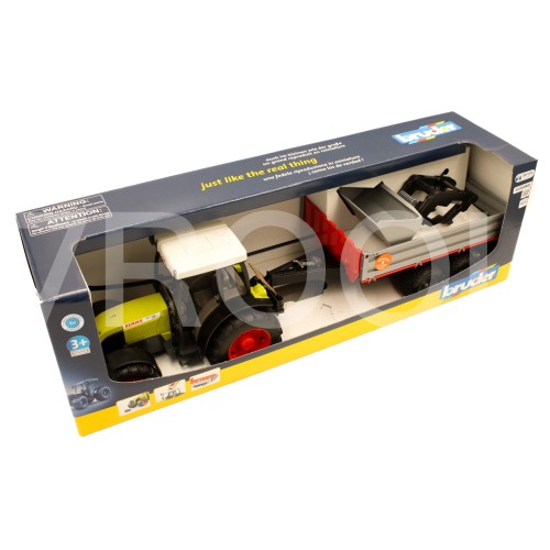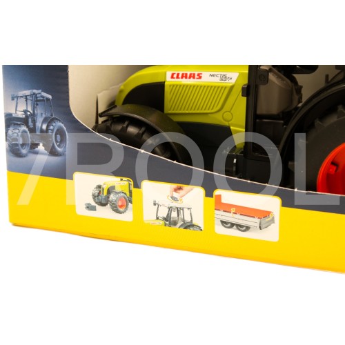 Ciągnik Claas Nectis 267F z ładowaczem czołowym i przyczepą – Bruder 2112