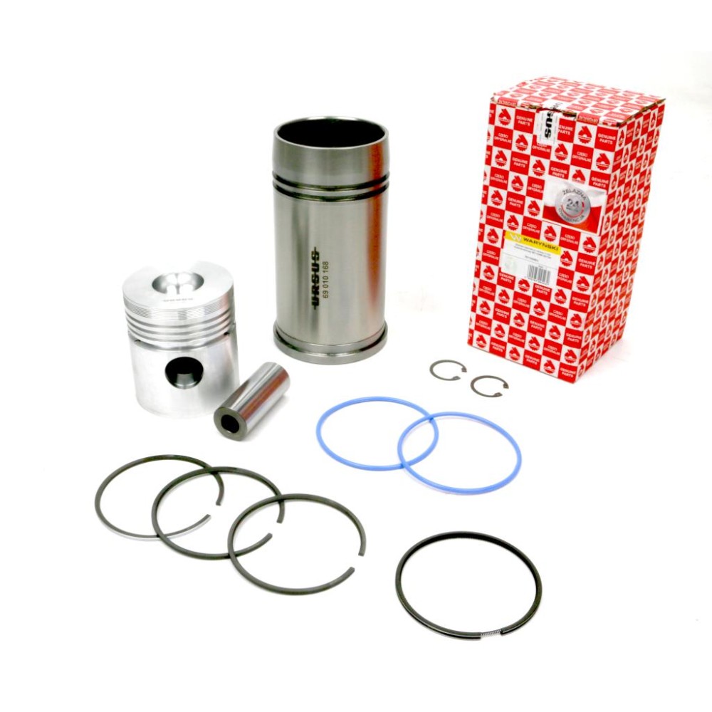 Oryginalny 4-pierścieniowy zestaw naprawczy silnika URSUS fi-102 69110099 do ciągników Zetor 5211, 5245, 7211, 7245, 7745H. Zawiera tuleję, tłok, pierścienie, sworzeń i zabezpieczenia, gwarantując pełną regenerację silnika i jego długą żywotność.