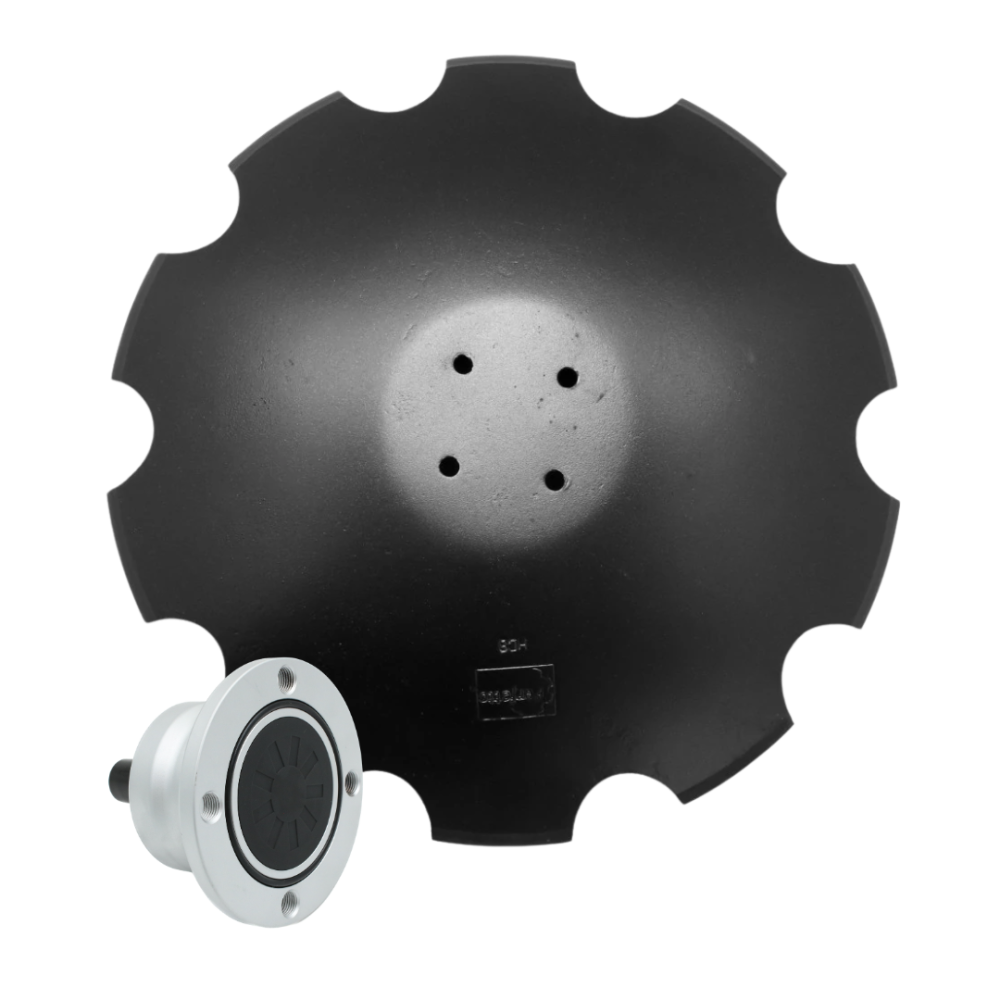 Kompletny zestaw roboczy do maszyn uprawowych – talerz uzębiony o średnicy 560 mm oraz piasta bezobsługowa o rozstawie otworów 98 mm, gotowe do montażu w bronach talerzowych, agregatach ścierniskowych i gruberach. Dzięki kompatybilności elementów i wysokiej jakości wykonania, zestaw gwarantuje trwałość oraz efektywną pracę w trudnych warunkach polowych.