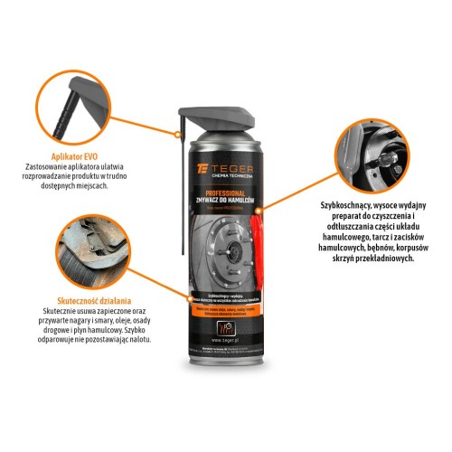 Zmywacz do hamulców PROFESSIONAL z aplikatorem EVO, 500ml / TEGER
